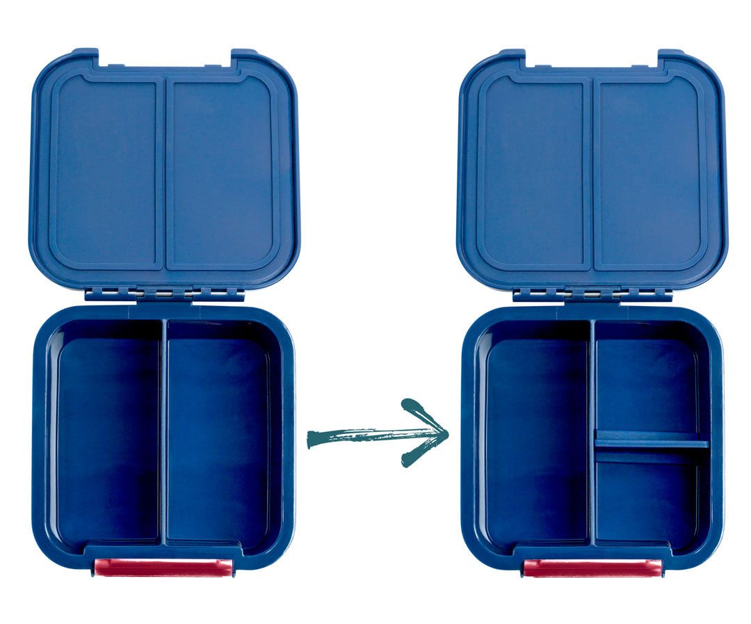 Cutia de prânz include și un separator detașabil și mobil care poate fi folosit pentru a împărți cutia în 3 compartimente. (Separatorul mobil nu oferă o separare silențioasă între două compartimente adiacente.)
