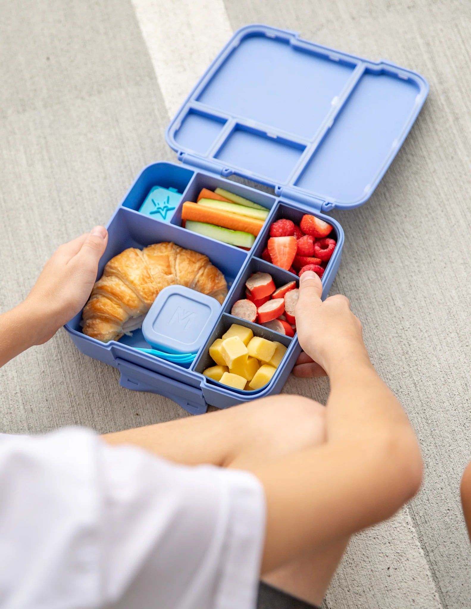 *Lunchbox-ul MontiiCo Feast poate fi folosit pentru alimente cu textură mai moale, precum sosuri sau iaurturi, însă nu este recomandat pentru lichide, precum dressingul, supa sau legume și fructe foarte zemoase (ex.: pepene, roșii suculente).